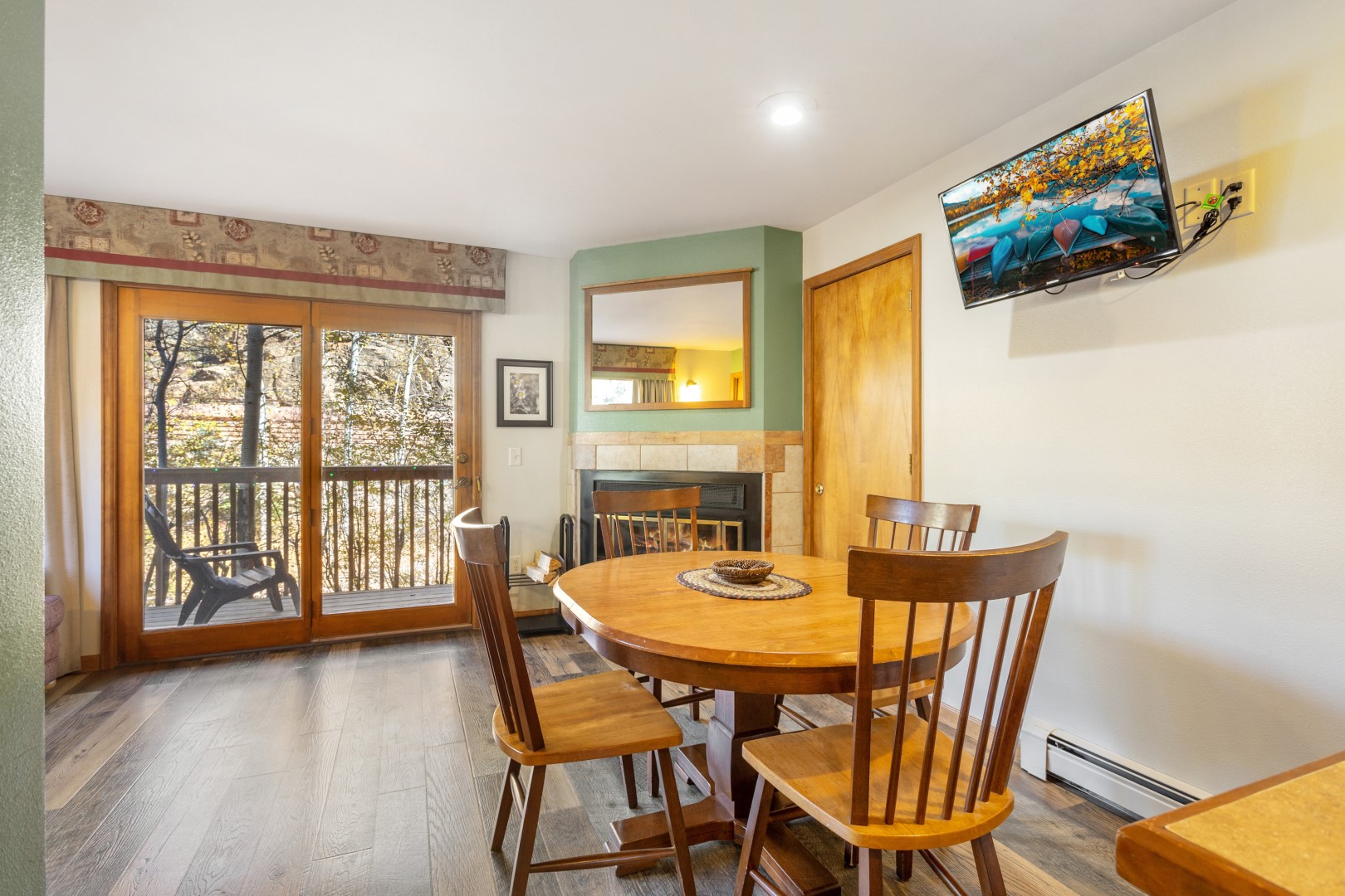 full kitchen, living room w/ board games, private hot tub + deck on the river, private fire pit, full bathroom, full refrigerator, microwave, coffee maker, cable and complimentary internet (Wi-Fi), river view, wood fireplace, balcony, pull out couch